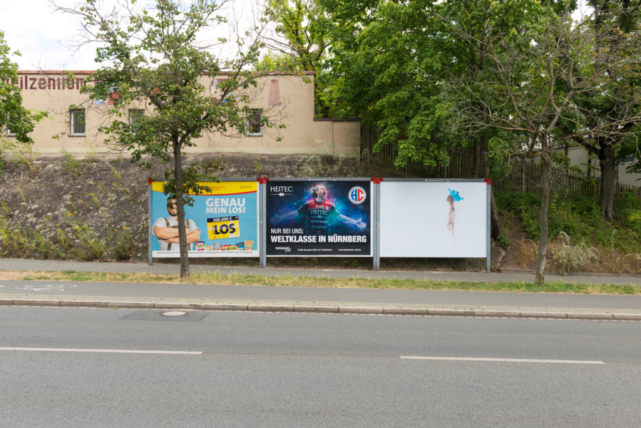 Fotografie, Malerei, Zeichnung, Illustration, Lettering, zu sehen auf großformatigen Werbeflächen. So vielfältig zeigte sich die Open Air Gallery "Kunst-Anschlag – Signale aus der Nürnberger Szene", die vom 17. bis 27. Juli 2020 in die dritte und vorerst letzte Runde ging. Dieses Sonderformat, das vom Projektbüro im Geschäftsbereich Kultur der Bürgermeisterin realisiert wurde, zeigte die Vielfalt der Nürnberger Kunstszene und verstand sich als Unterstützung für die Kunstschaffenden während der Corona-Krise. Wie bereits in den ersten beiden Dekaden, gestalteten 20 Künstlerinnen und Künstler aus der Region Plakatwände der Stadtreklame, die über das Nürnberger Stadtgebiet verteilt waren.