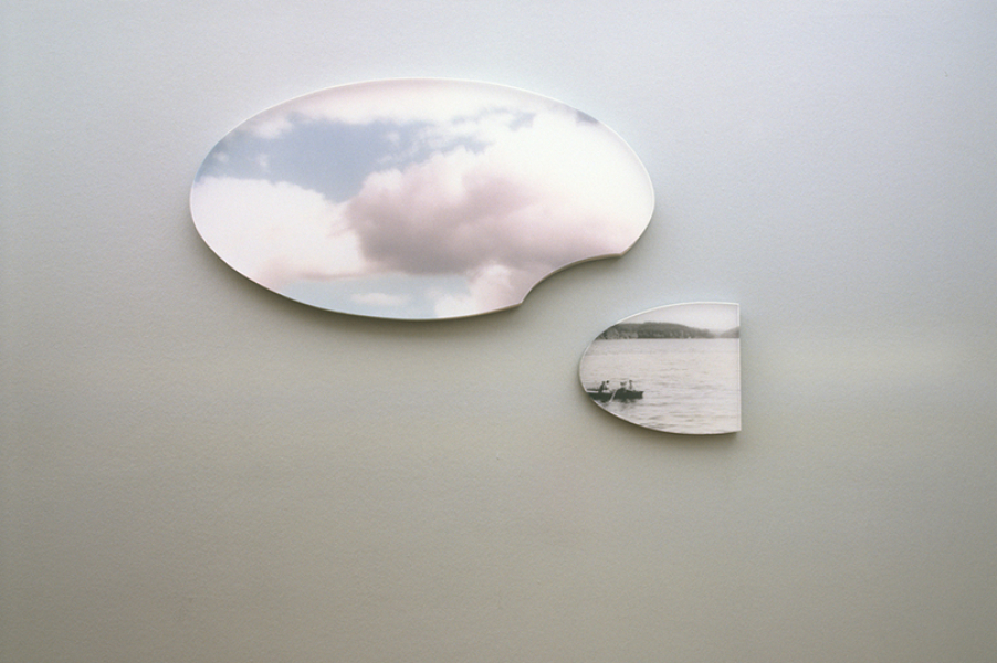 flussfahrt entstand als Beitrag zur Gemeinschaftsausstellung short stories. Anhand von Fotografien aus meiner Kindheit erzähle ich die Geschichte einer unbeschwerten Flussfahrt, eine Zinkbadewanne dient als Boot, ein größerer Junge ist Fährmann, der Rabe verstärkt Assoziationen zu Styx und Hades. Die Arbeit himmelfahrt zeigt Bootsfahrt, See, Wolken: Im formalen wie inhaltlichen Spiel mit Erinnerungen und Assoziationen schieben sich elliptische Einzelobjekte ineinander oder werden durch Raumkanten begrenzt. (Fotografien Bruno Weiss/ Ursula Kreutz) 2007