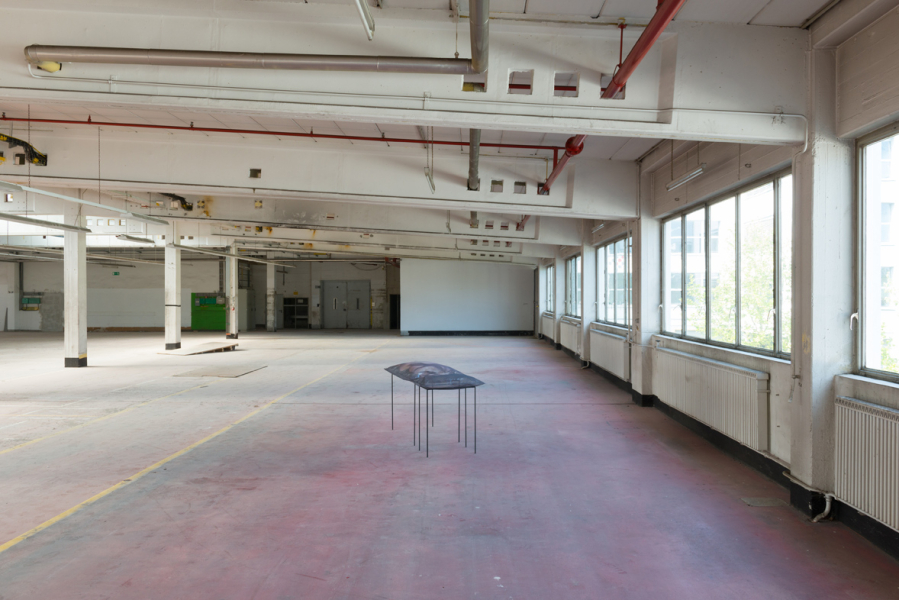 »nimala«, Installation, transparente Polyesterkissen, Digitaldruck auf Polyestergewebe, geschwärztes Eisengestell, 120x70x25 und 40x60x25 cm, Halle 15, Auf AEG, (Fotografien Annette Kradisch) 2020